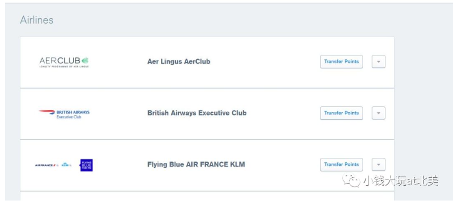 chase ur的兑换方式很灵活,选择很多,这里我们要介绍的是兑换成United里程,所以选择transfer to travel partners。但即使是transfer to travel partners,chase合作的伙伴也有很多,比如: