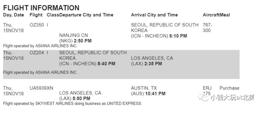 最后我给爸爸兑换的是南京-奥斯汀的这趟航班: