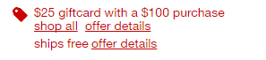 现在的活动是$25 giftcard with a purchase of $100 or more of select Diapers, Training Pants, Baby Wipes, Infant Formula, Baby Toiletries & Baby Food items(到12/10/2016 at 11:59pm PT截止)。