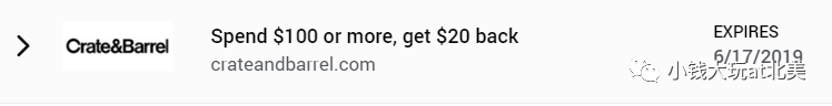 Crate and Bareel满$100返$20。我很喜欢的一家家具店,东西有点小贵,配合amex offer不错。可以买礼品卡,只能买寄到家的physcial gift card.