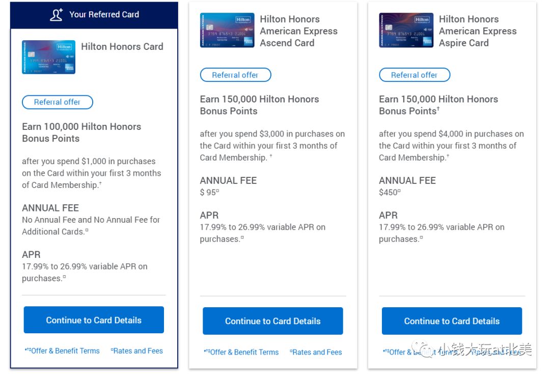 另外提醒下大家哦!现在amex的三张希尔顿都是史高奖励呢,可以考虑申请!卡的介绍可以看:【信用卡推荐】史高的Amex Hilton信用卡可是有三张!。再次强调下,这三张卡是不同的三张卡,所以可以每张卡的奖励都拿一遍的。