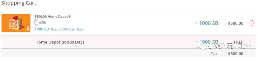 这家是swagbucks旗下的,关于swagbucks的介绍可以看:【好物推荐】Swagbucks赚零花钱攻略。平时是2%返现,就是1000SB;现在活动期,还有额外4000SB。所以买$500礼品卡,可以拿到5000SB,价值$50,等于九折啦。