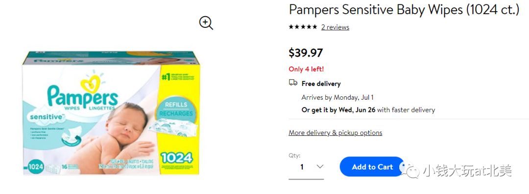 如果不在sam’s club购物,就这单中的湿纸巾,在沃尔玛就卖到$40一箱: