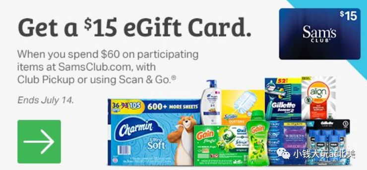 配合网站购物使用Club Pickup或者Scan&Go满$60就有$15的电子礼品卡拿。参与活动的商品可以点:https://www.samsclub.com/sams/club-services-perks/4560101.cp?xid=hpg_mosaic_14_2