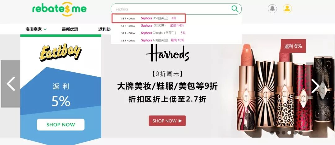 注册并登录RebatesMe,在搜索框输入:Sephora