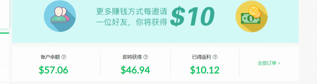 而只要被邀请的用户在9/30/2019号前下单返现满10美金就可以提现了(信用卡,支付宝,paypal都可以