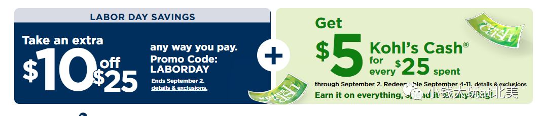 - 每花$25给$5 kohls cash