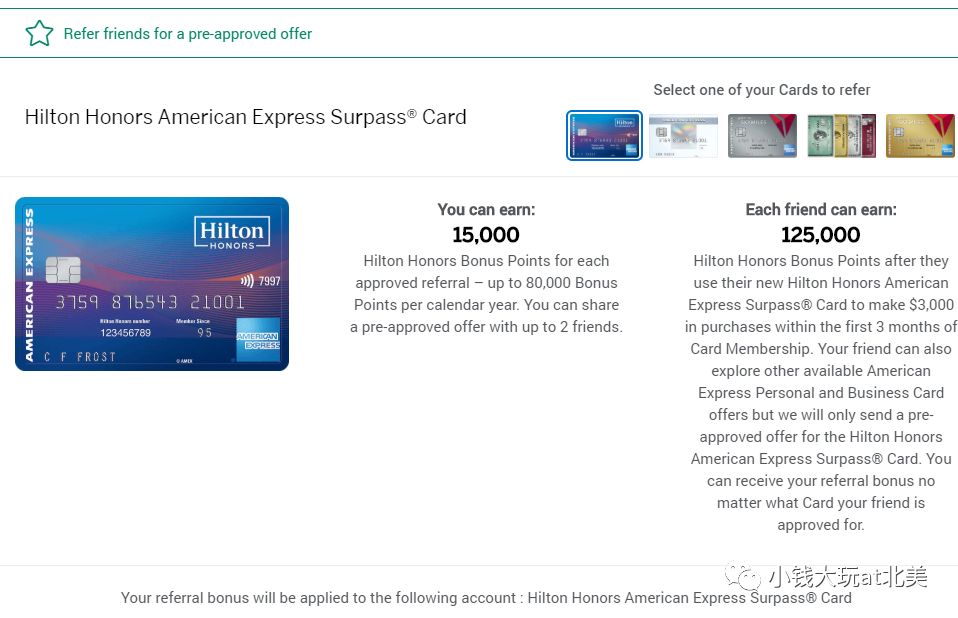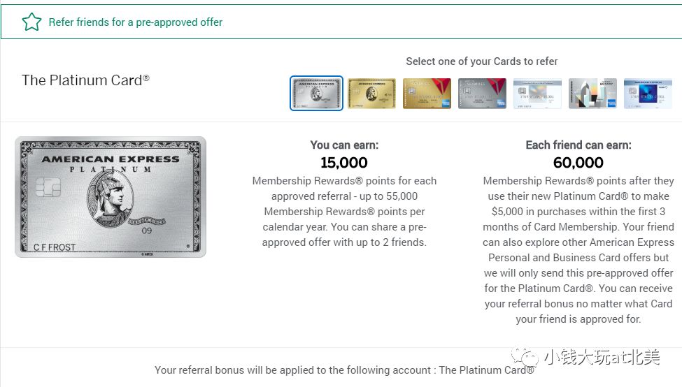 点这个链接(也可以点击左下角”阅读全文“获取链接) https://amex.co/2B6izvA,log in你的amex账户看看你能不能refer别人(应该也是可以refer自己的哈),必须显示有绿色字样“refer friends to a pre-approved offer。这个refer链接没有lifetime的限制,可以重复拿,每个人也只能refer两个别人。
