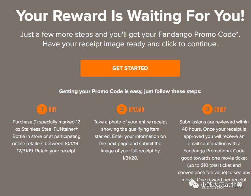 到时候上传收据就可以了,一个账户可以换两张价值$10的code,在明年二月之前去fandango兑换即可。