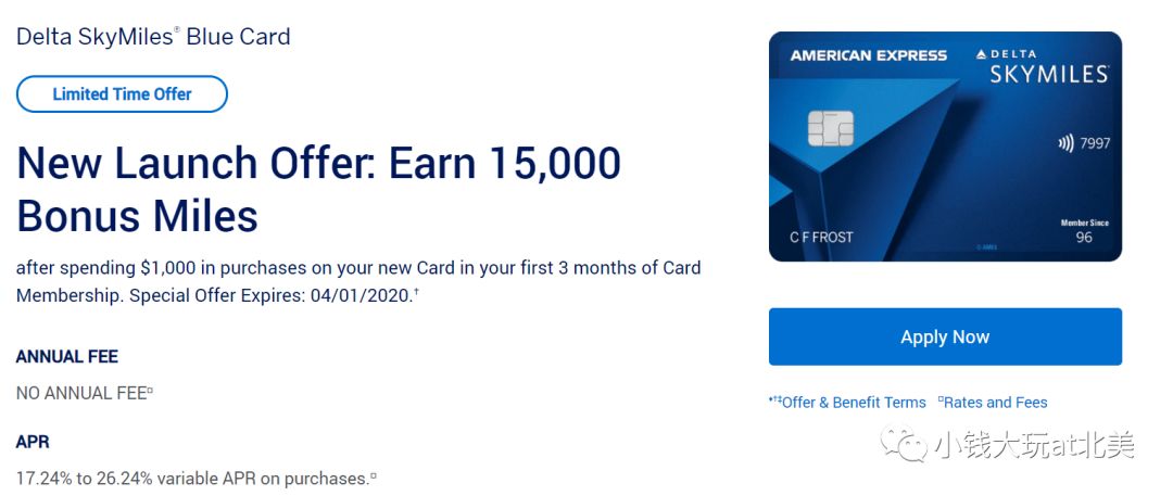 开卡奖励:三个月内消费满$1000拿15,000点数。卡本身没有年费。