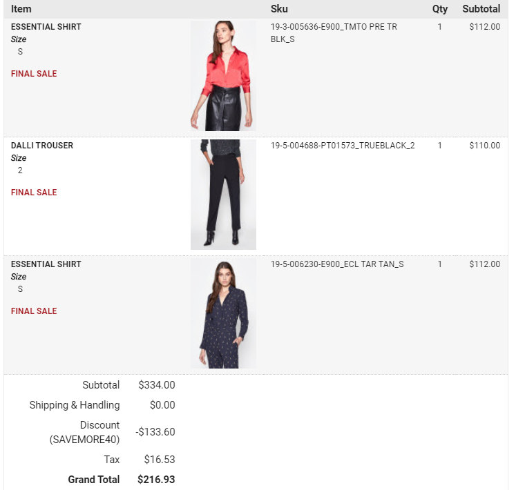 所以so far,三件equipment的衣服,实际支付金额为$216.93-$40-$28.06-$5 = $143.87!!!!!! 平均一件$50不到哦,还是税后!