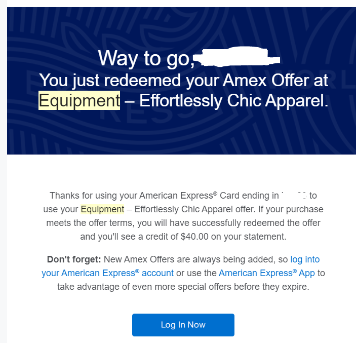 下单以后立刻就收到amex的邮件确认我消费成功: