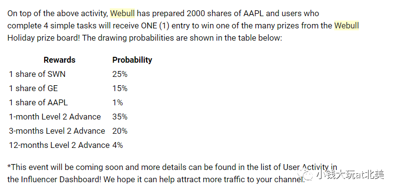 微牛针对holiday season办了这么一个活动发股票的活动: