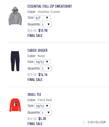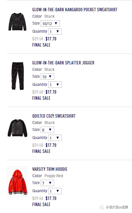 于是我在折扣区里挑了男孩的七件衣服,主要都是厚实的外套或者sweatershirt