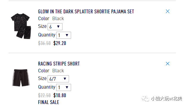 ->>> 比如你买了价值$250的这个牌子的童装,都来自sales区,大概是打六折。你实际需要支付$150;