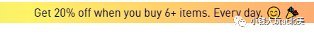 常年叠加一个活动是,买到六件有额外的八折;而且不限产品。也就是说,哪怕是on sale的衣服,也是六件就能有八折呢。
