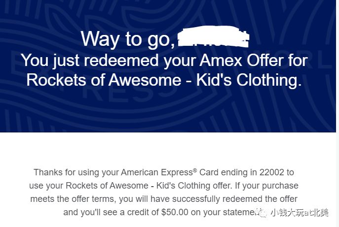 ->>> 然后你的amex offer给你返了$50,shop small又给你返了$5,最后实际支付$45。