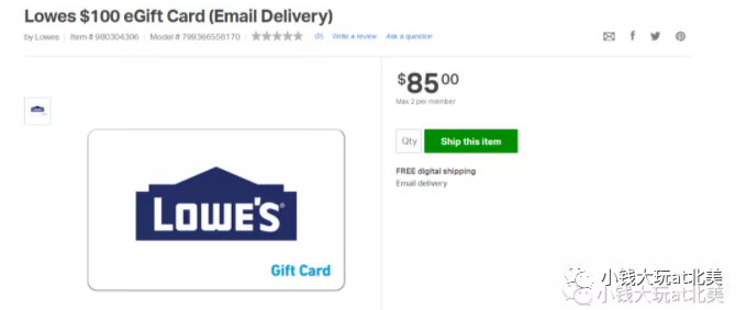 比如之前分享过在sam’s club买85折lowe’s礼品卡的deal:快!这几个礼品卡折扣不错~