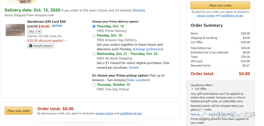 这种和银行一起的shop with points的活动买亚马逊售卖的第三方礼品卡最划算啦!AGAIN,有点绕哈,是亚马逊售卖的,非亚马逊的礼品卡,比如我最喜欢买的nordstrom,还有星巴克,wholefoods,丝芙兰都是可以的!