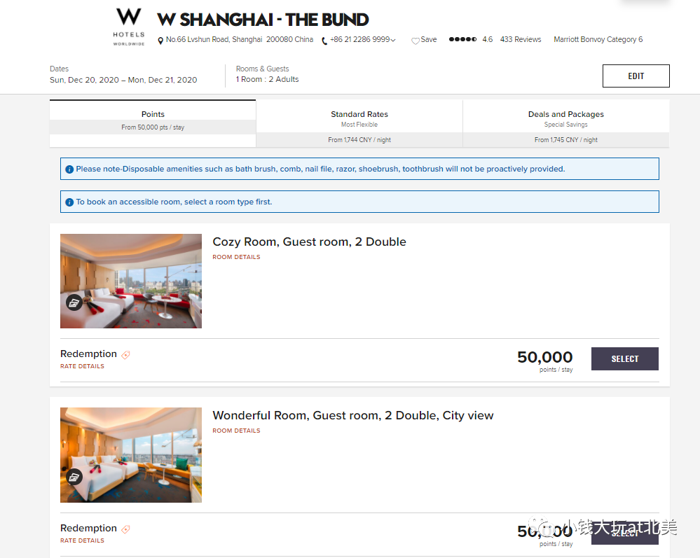 传说中的网红店啊,大上海的W酒店,很多人都去打卡的,依然可以免费!它家有好几种户型都只要50k点,这里截图几个: