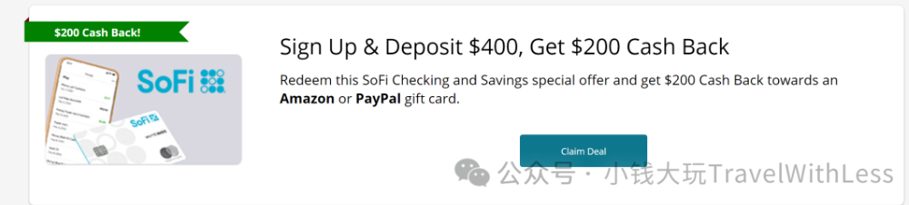 活动链接戳:https://www.swagbucks.com/cash-back-offer/121343/sofi-checking-and-savings