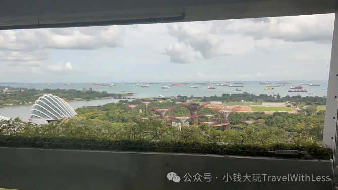我们房间的景色正对的是滨海湾花园(Gardens by the bay)位于金沙酒店后面,超红的电影《疯狂亚洲富豪》婚礼狂欢派对举办的地点就是在滨海湾花园拍摄的,花园内有「云雾森林(Cloud Forest)」、「花穹(Flower Dome)」等花园温室,及超好拍的「擎天树/天空树(超级树)」。