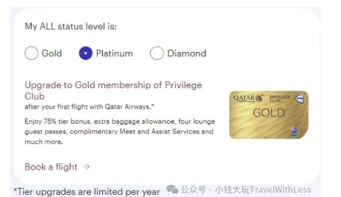 【匹配卡塔尔航空金卡】