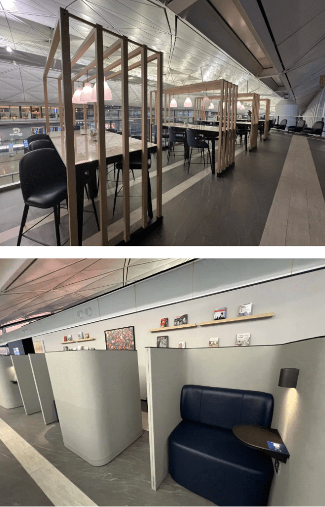 综合来说,它是我个人目前最喜欢的香港机场的一家休息室,所以我也放在了整香港机场系列的第一个来说。2022年年底(疫情期间)才开放的,硬件条件非常的新,设计也是现在非常流行的风格。空间分割为了很多不同区域,有吃饭的、休息的、娱乐的、工作的,每一个空间都有自己风格的相应家具。视野也非常好,一整面的玻璃墙能看到飞机起飞降落。食物也是可圈可点。