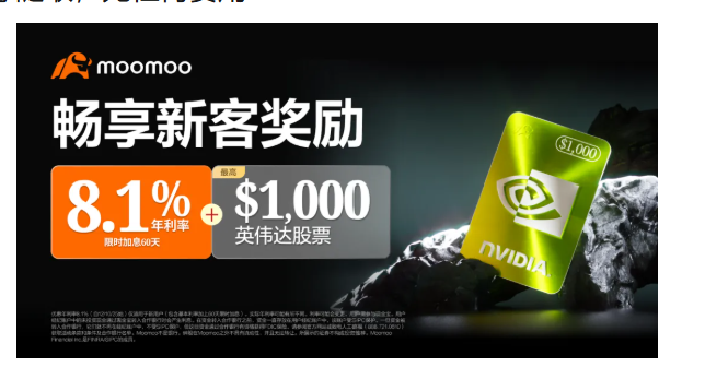 现在富途moomoo给我们“小钱大玩”的用户提供了独家的开户奖励,开户入金即可赠送最高价值$1000的免费英伟达股票,闲置资金还能自动进入 CashSweep,最高 8.1% 年化利息——随存随取,无任何费用!点击我的邀请链接开户领取奖励(也可点击文末左下角“阅读全文”获取链接):https://j.moomoo.com/0AG3tu
